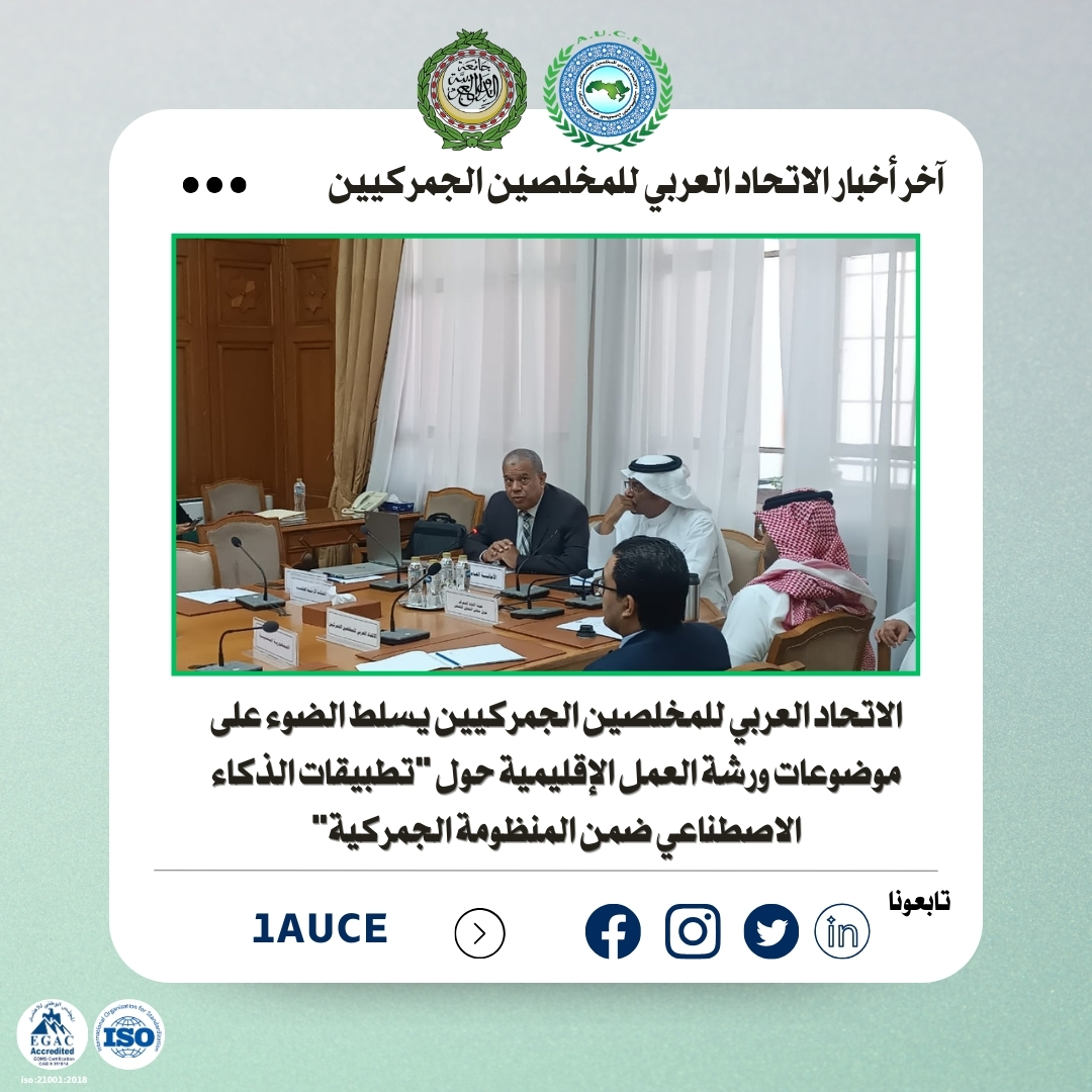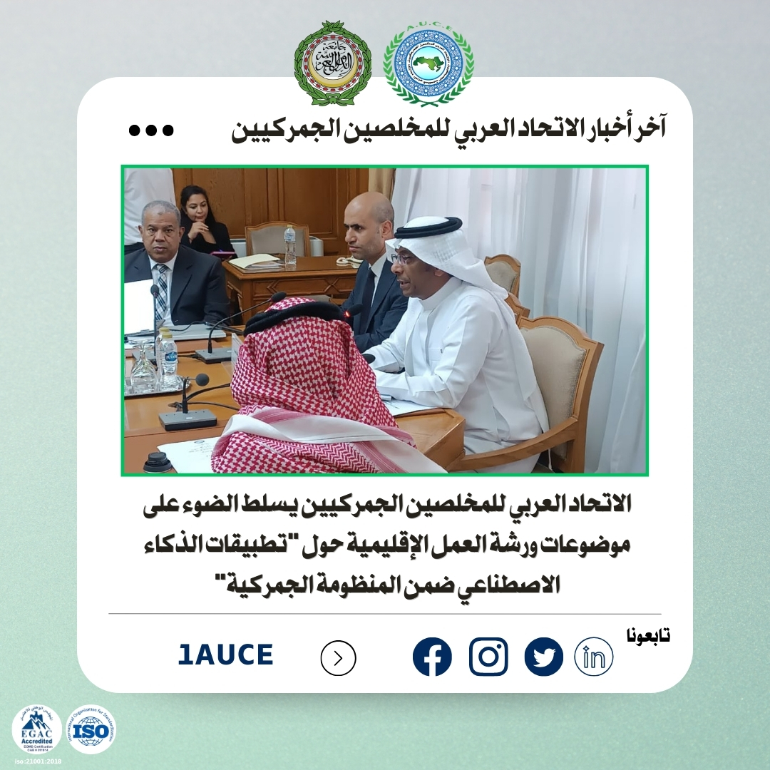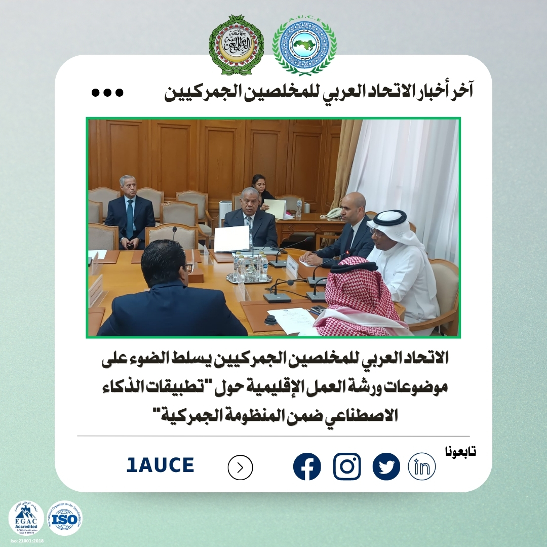 نظم الاتحاد العربي للمخلصين الجمركيين بالتعاون مع جامعة الدول العربية – إدارة التكامل الاقتصادي العربي، ورشة عمل إقليمية بعنوان “تطبيقات الذكاء الاصطناعي ضمن المنظومة الجمركية”، وذلك بمقر الجامعة بالقاهرة على هامش الاجتماع الـ 38 للجنة الإجراءات الجمركية والمعلومات، وبمشاركة واسعة من إدارات الجمارك العربية.