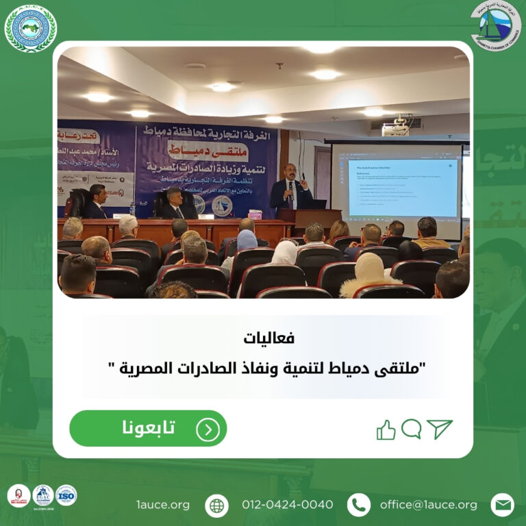 نظّم الاتحاد العربي للمخلصين الجمركيين بالتعاون مع الغرفة التجارية بدمياط، اليوم الاثنين 14 ابريل 2025 ملتقى “تنمية ونفاذ الصادرات المصرية”
